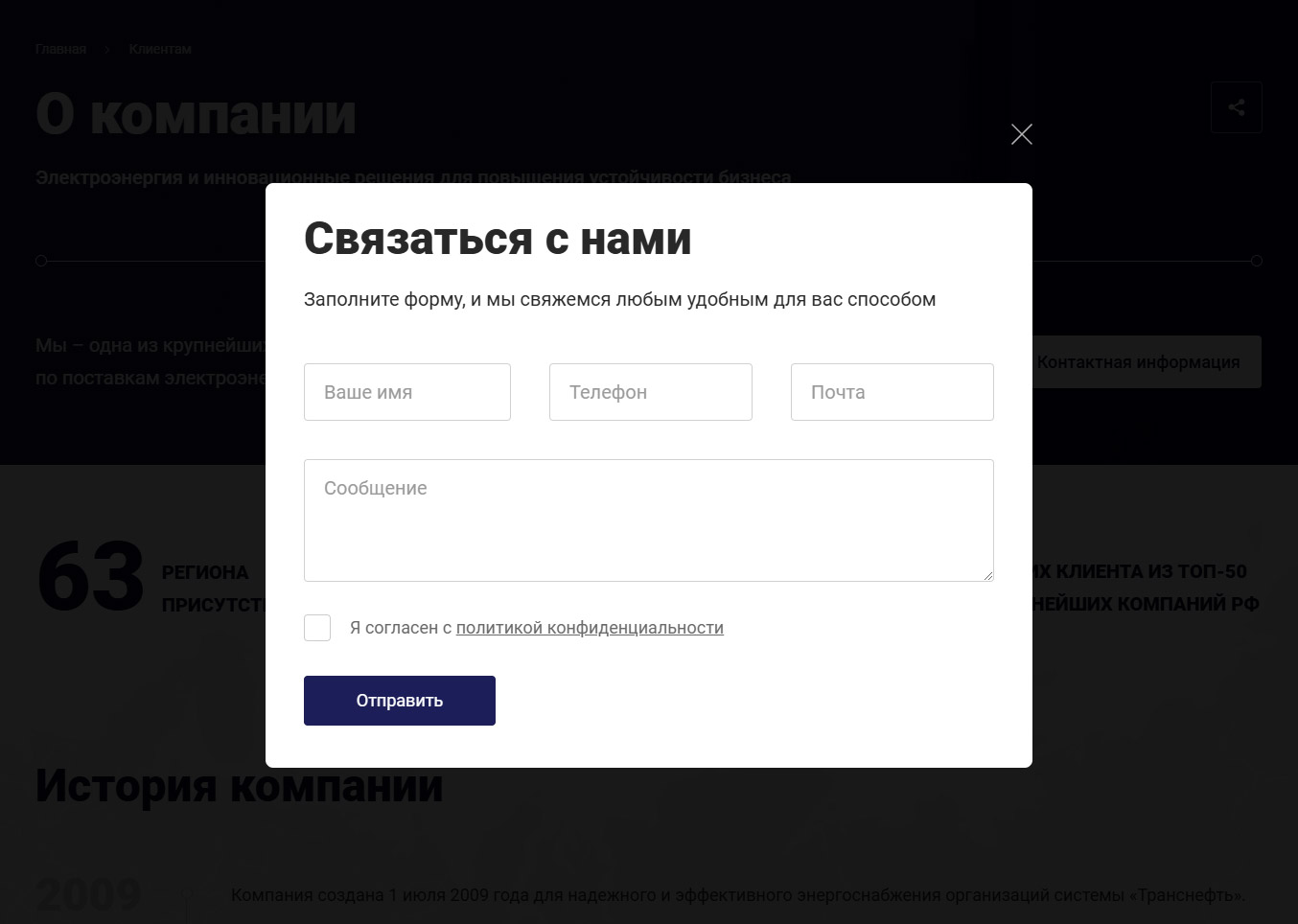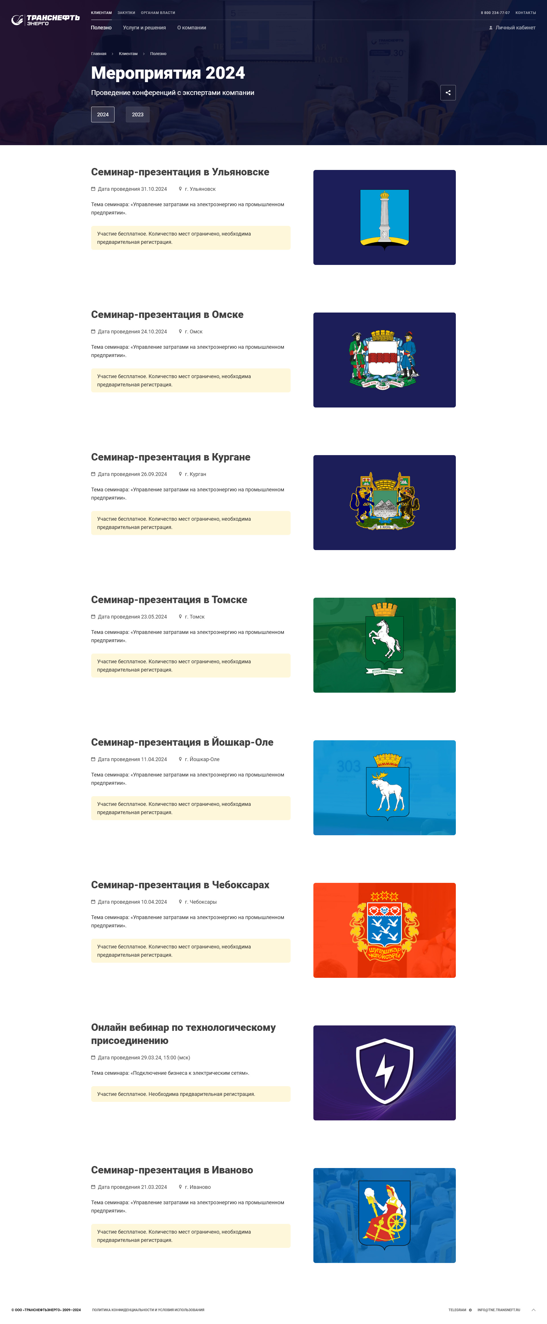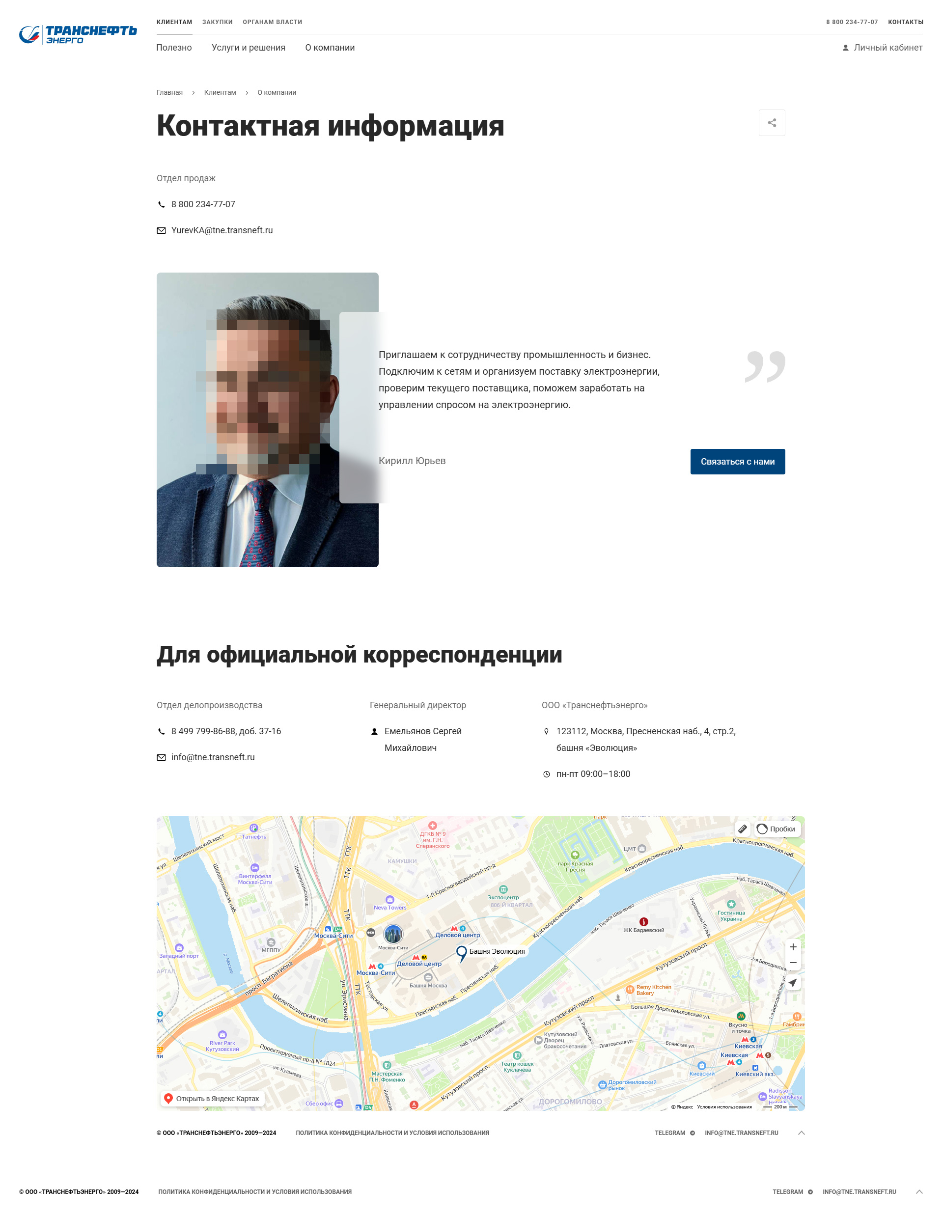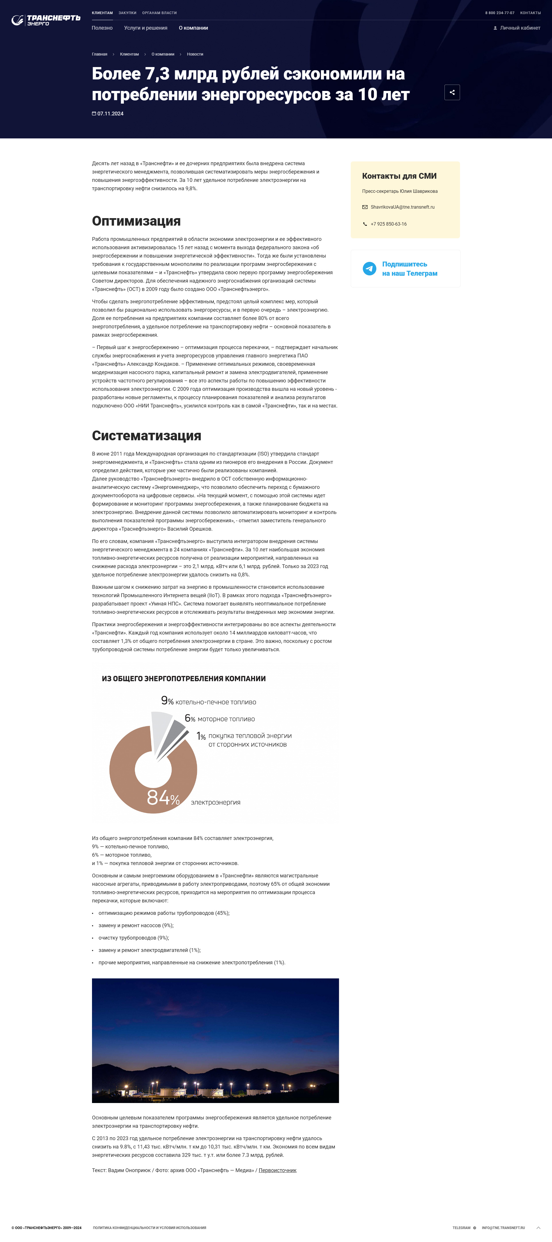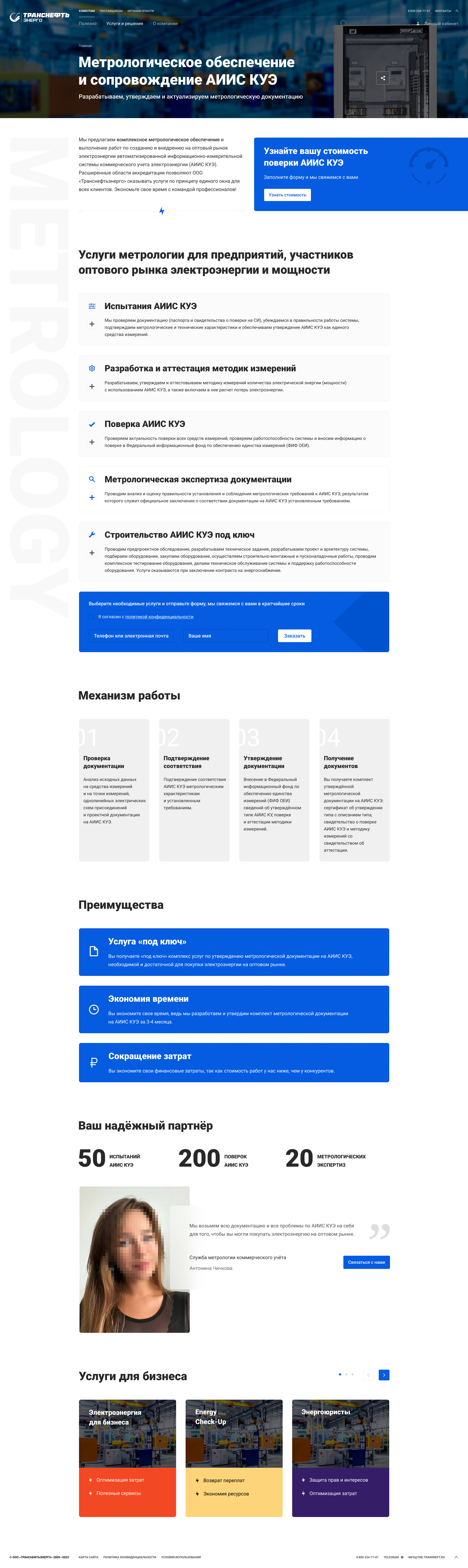 Для энергоснабжающей компании «Транснефтьэнерго» разработан корпоративный веб-сайт, который включает в себя отзывчивый дизайн и вёрстку для работы на любом устройстве, интеграцию с CMS, продвижение в поисковых системах с помощью SEO и контекстной рекламы. Проект реализован в сотрудничестве с клиентом в гибридном формате работы.