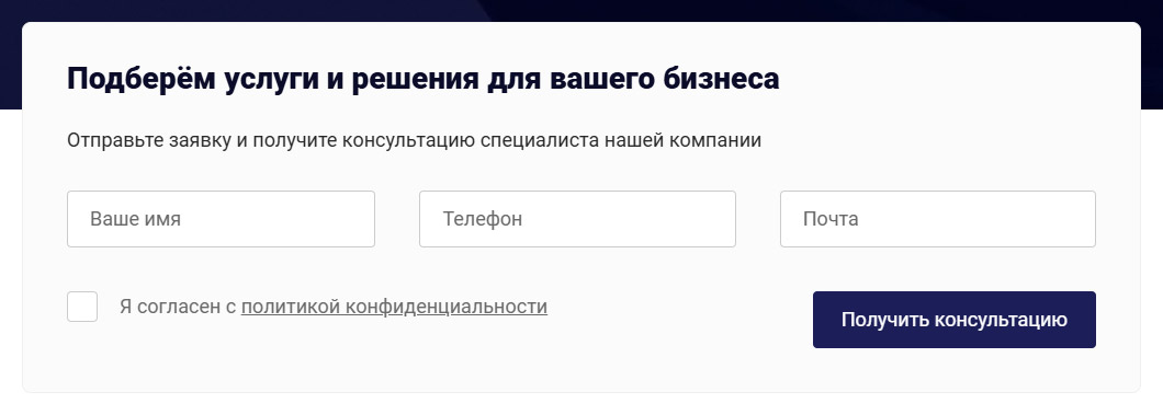 Блок с множественным выбором позволяет клиенту получить консультацию по одной или нескольким услугам.