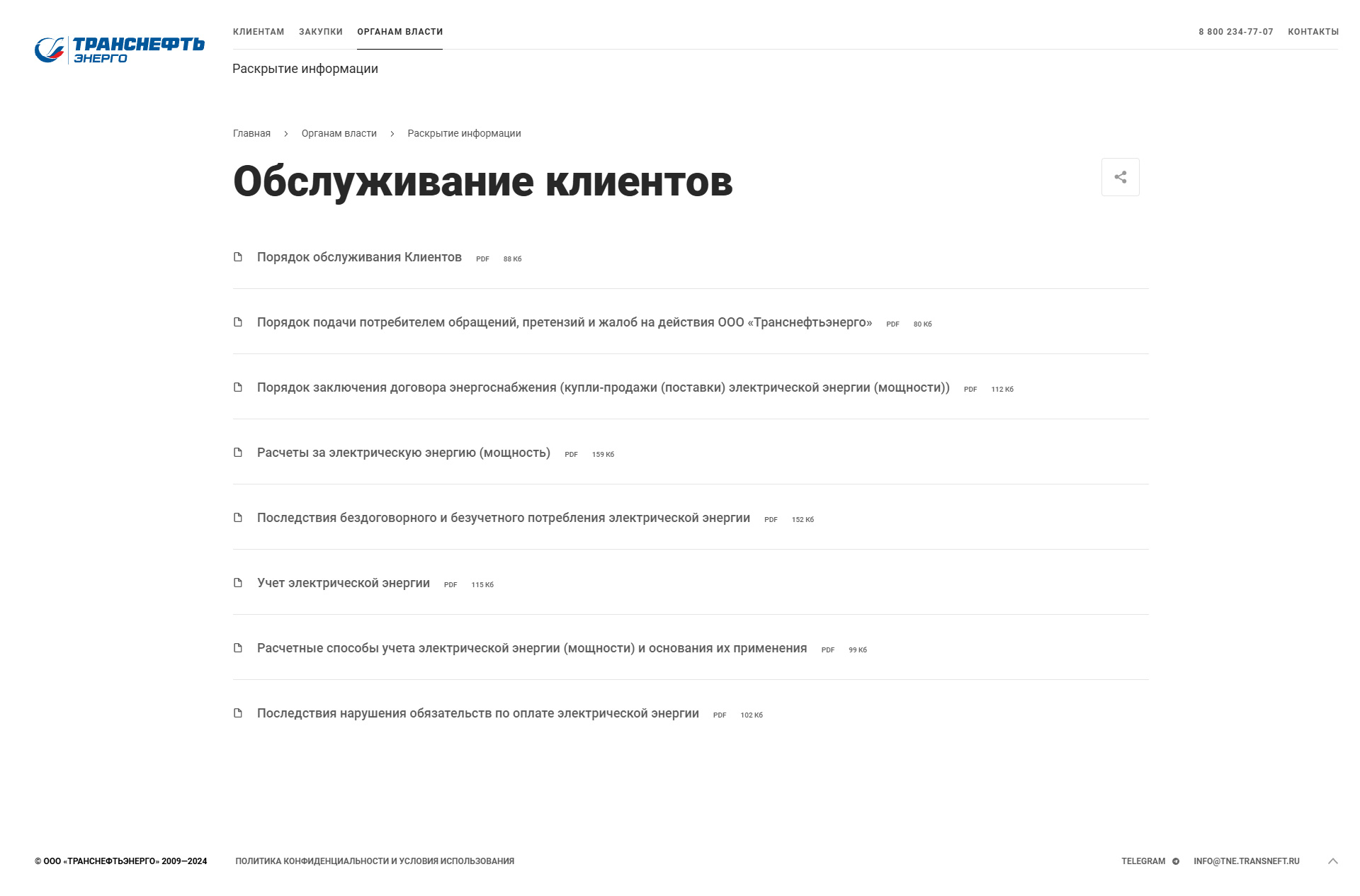 В специальном разделе «Органам власти» информация компании представлена в лаконичном и удобном формате, доступном для всех пользователей.