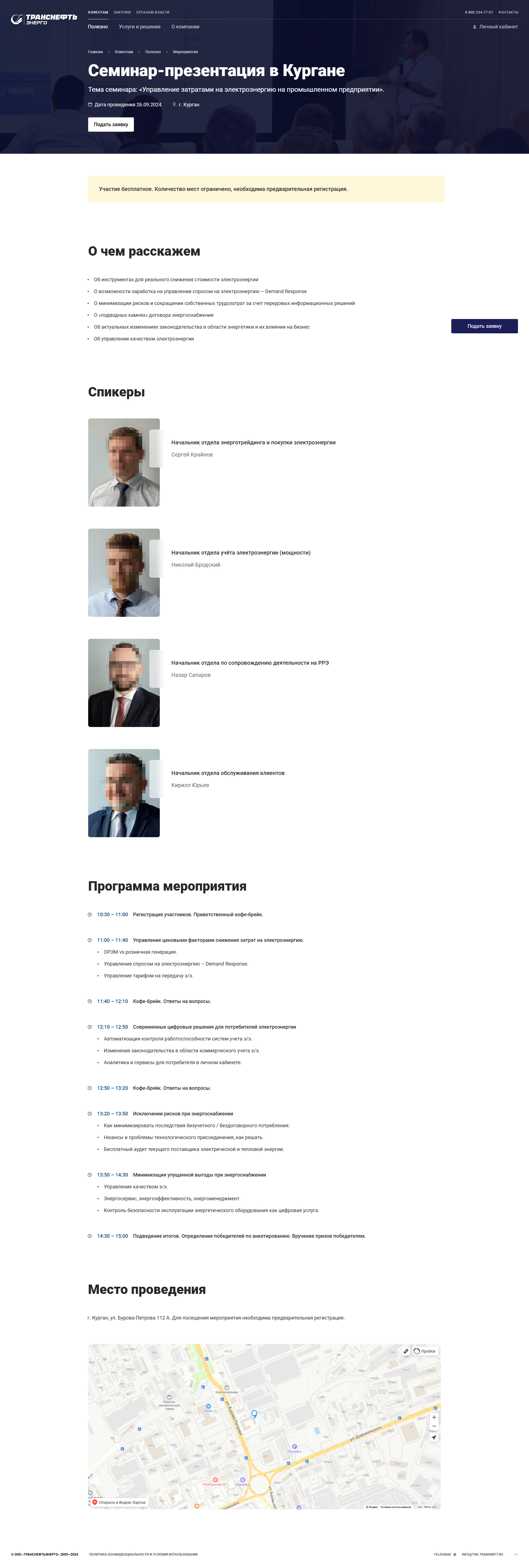 Раздел сайта информирует посетителей о мероприятиях и позволяет подать заявку на участие.